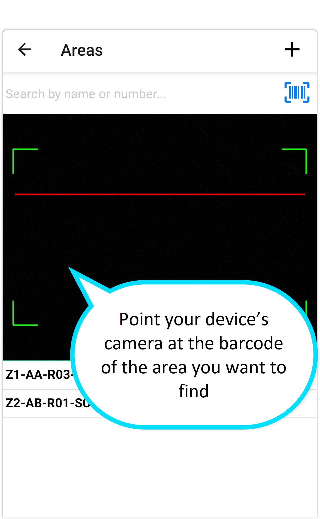 - Point your device’s camera at the barcode of the area you want to find.